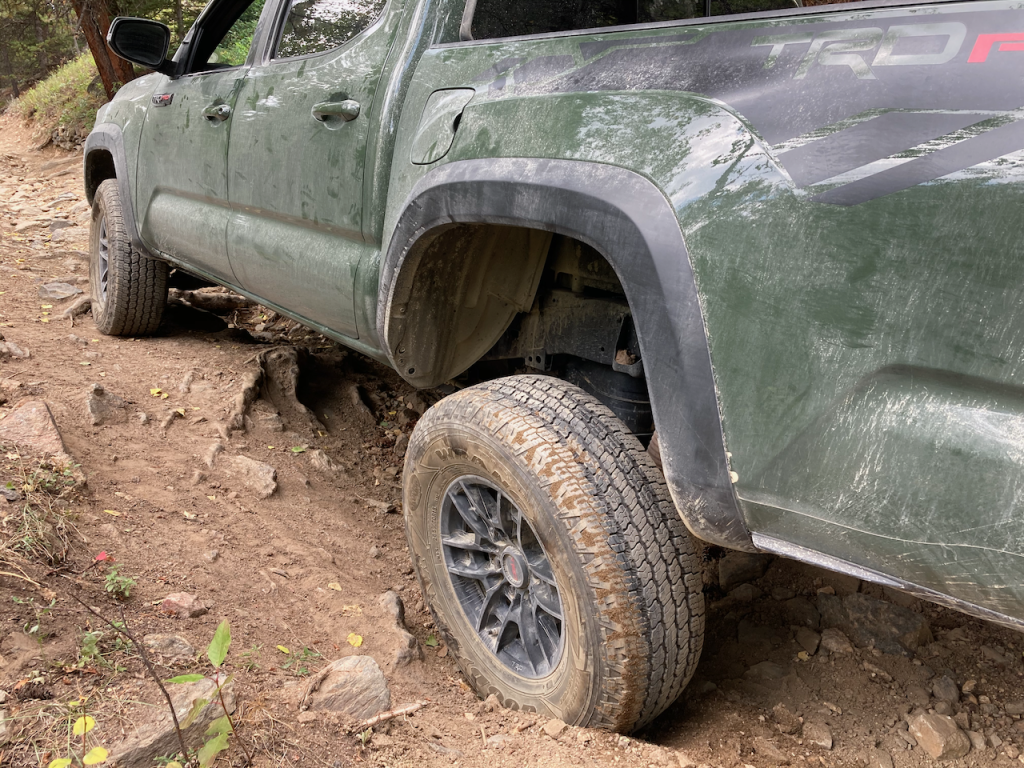 The tires slipped some in places. But there wasn’t anything adding a little more momentum didn’t solve. In fact, the tires slipping was probably mostly due to the stock entry-level off-road Goodyear Wrangler tires. However, I do credit not getting a flat out there to the Kevlar reinforcements in these OEM tires. The Toyota Tacoma TRD Pro is certainly one of the best stock off-road trucks on the market.