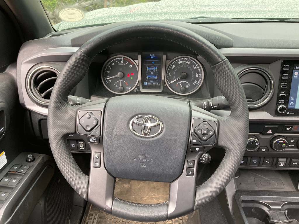 Inside, the double cab provided enough room in the front seats for my wife and I. But our two kids in the back in car seats were a little squished. The one issue some people have with the geometry of the Tacoma is how close the seat is to the floor. I never had a problem with this on our 800+ miles of driving, but folks with longer legs may not be as keen on it (I have a 33-inch inseam). Where things got really cramped was in the second row. Our kids in their inserted car seats had to sprawl their legs to fit. There’s some cargo storage under the second-row seats, but with kid’s car seats in place it made that space useless for us. Otherwise, it would be a good spot to keep emergency-related items.