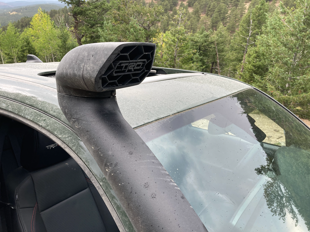 The TRD Pro trim is the top of the line off-road spec for the Tacoma. Our review truck even had a few optional extras, like the Desert Air Intake Package ($725). This is a raised air intake but isn’t fully sealed at the airbox, so does not increase the river fording depth capability. It does, however, allow the engine to draw cleaner air, which is especially helpful when traveling in convoy in dusty conditions. We also had some optional tie-down points in the bed which proved useful for our particular load heavy adventure.
