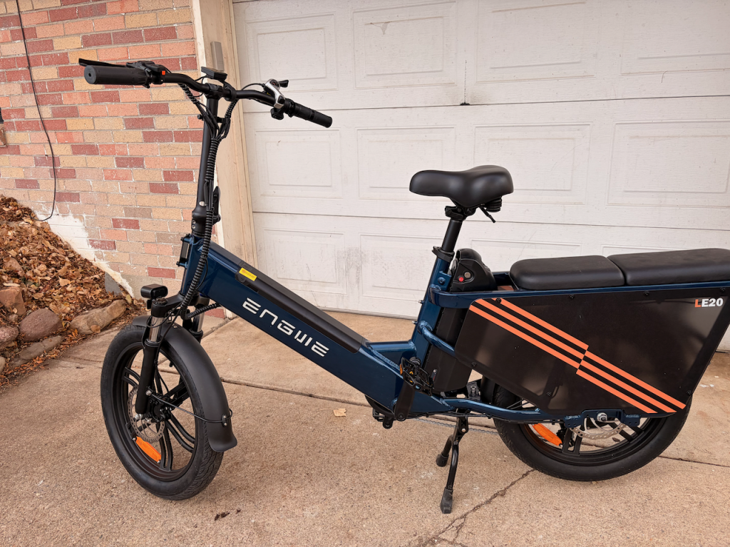 As the least expensive in this lineup, it follows the rule: you get what you pay for. The LE20 did not come with any sort of kid-containment for the longtail nor did it come with any bags for groceries. The longtail is padded but I never took my kids on it since there weren’t any rails, though, they could just hold onto my waist as we rode. This is the second bike from Engwe that we’ve used and while they both get the job done, our experience with both bikes so fare have been mediocre. But, like I said, you get what you pay for. So, if a simple and basic e-cargo bike is all you need, this might be your jam.