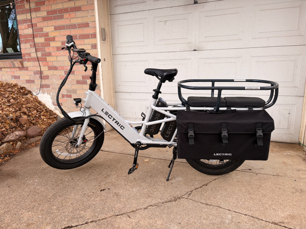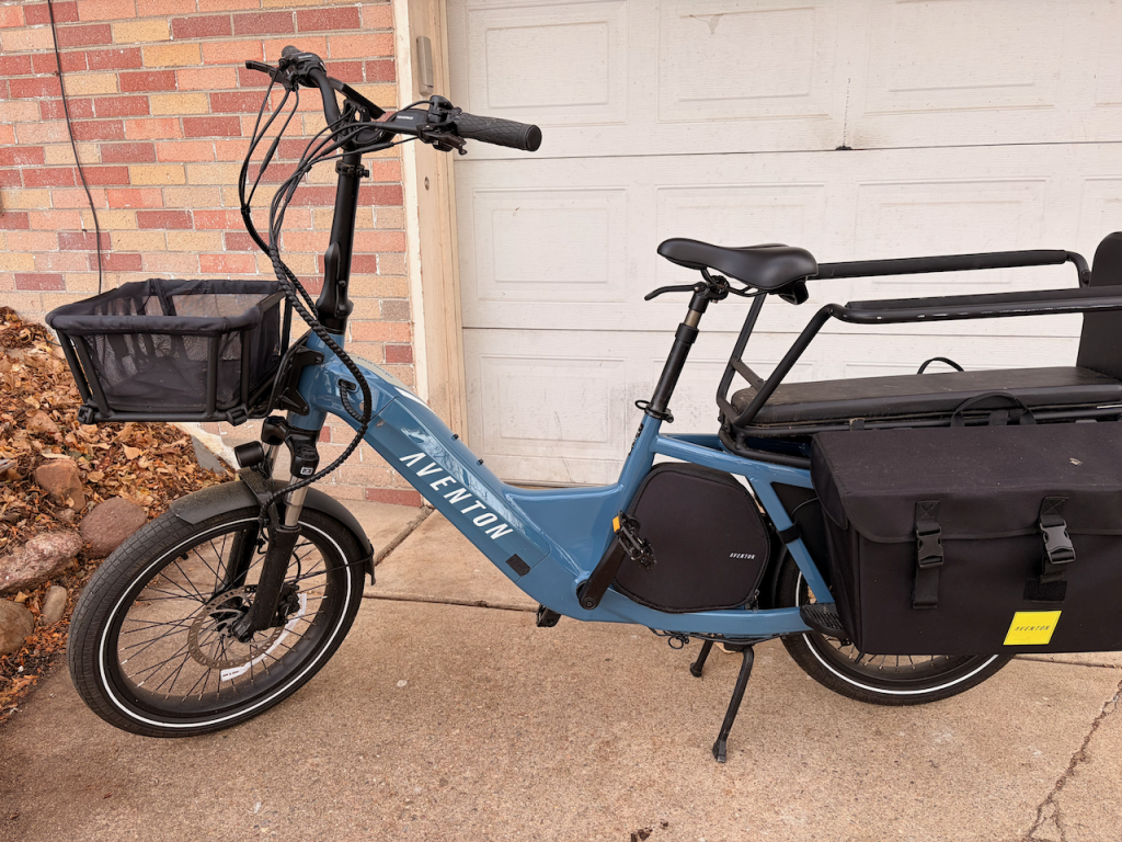 Much like with many three-row SUVs, a choice has to be made as to what kind of cargo you want to haul—people or supplies. The Aventon Abound cargo bags are the easiest to attach or remove if you’re regularly switching between hauling kids to school or getting groceries.
