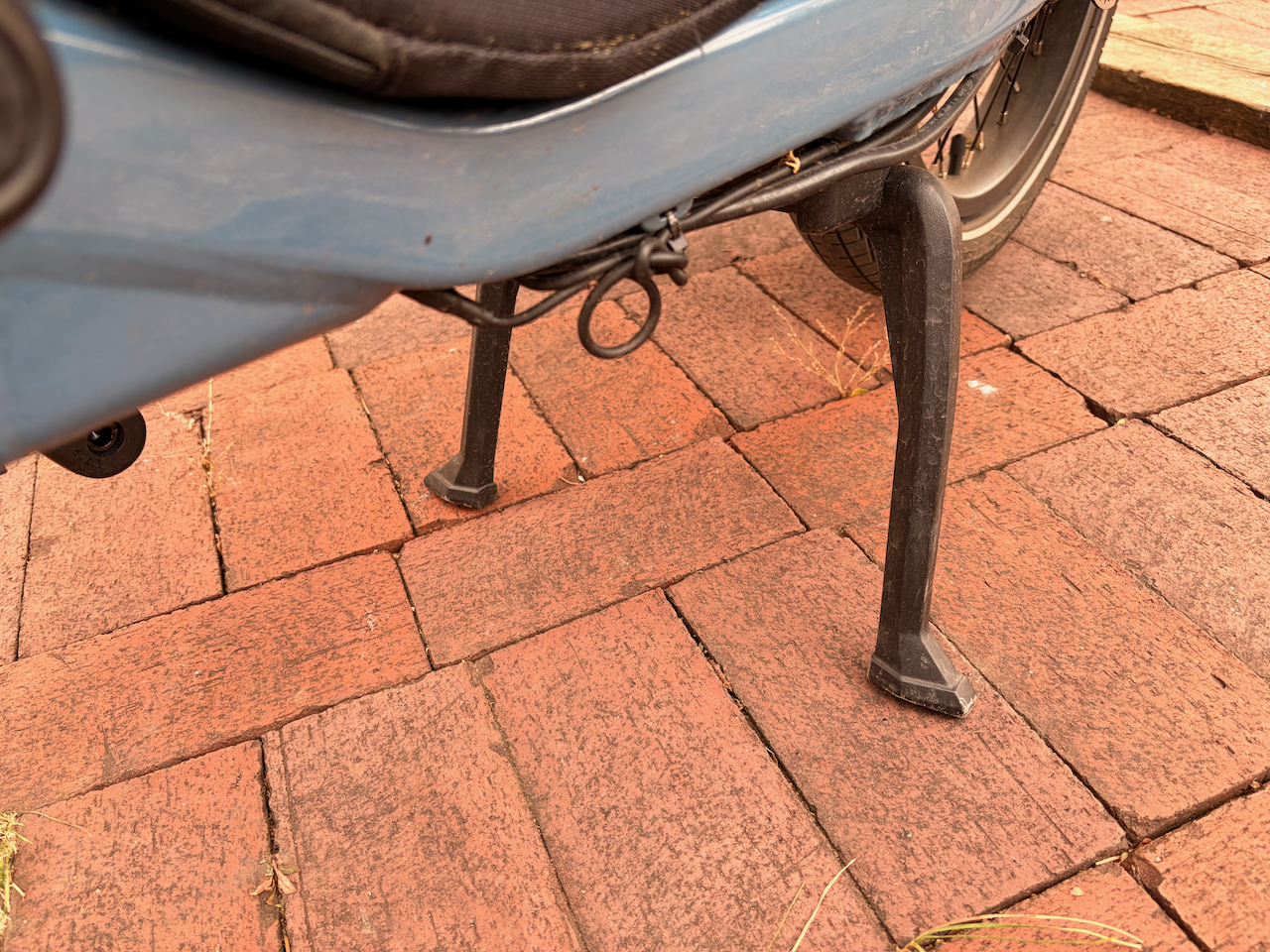 The Xpedition has the worst kickstand of the lot with peg-leg tips that simply disappear into the ground when parking on grass. And when parking on hard surfaces, if there is any slope it topples to the side or the small surface area of the peg legs might start to slip down hill.