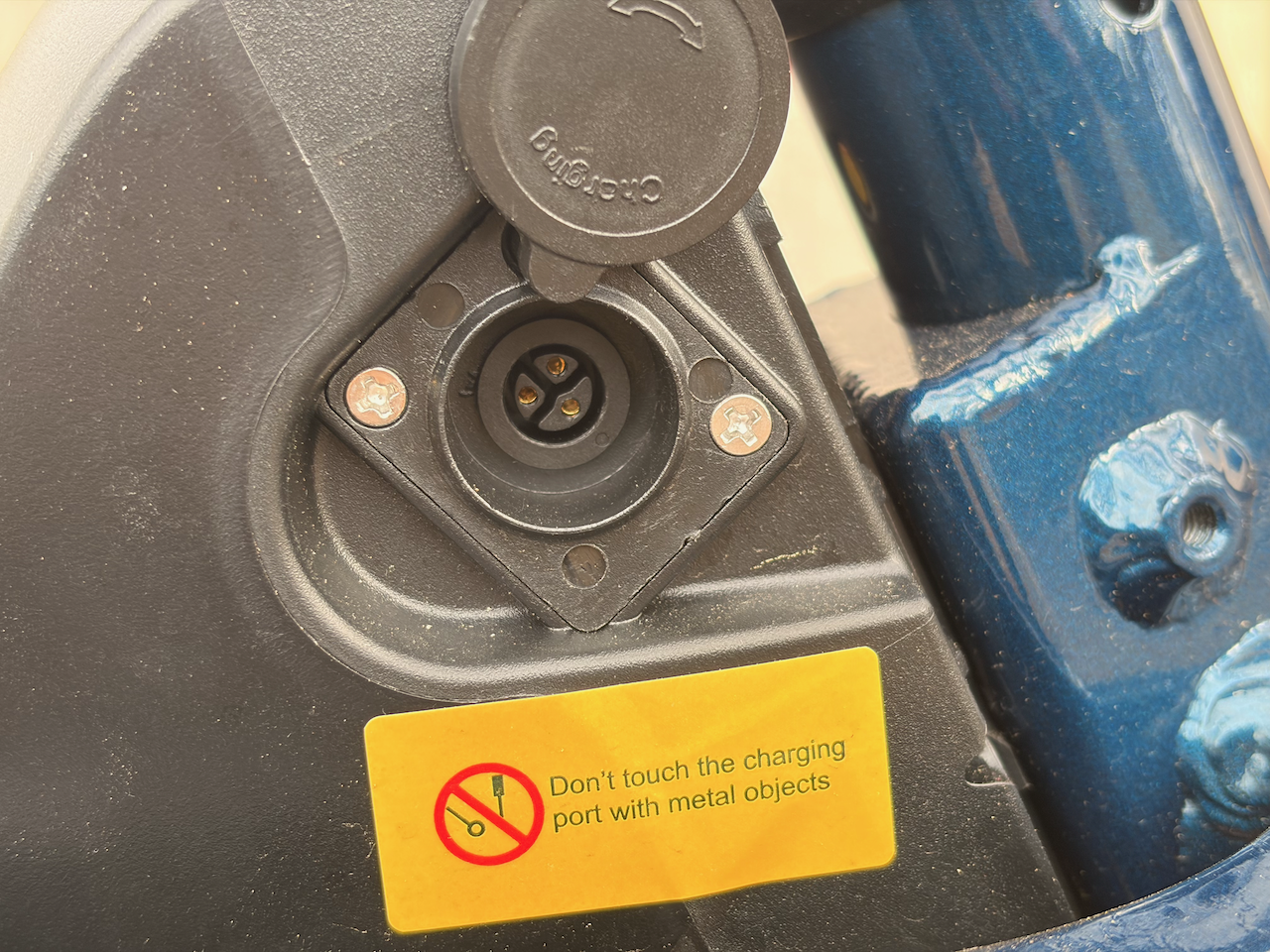 - Charge port: round, 3-prong: takes some twisting to find the fit to plug in; also does not match other Engwe plugs which was a simple round coaxial-very easy to plug in.