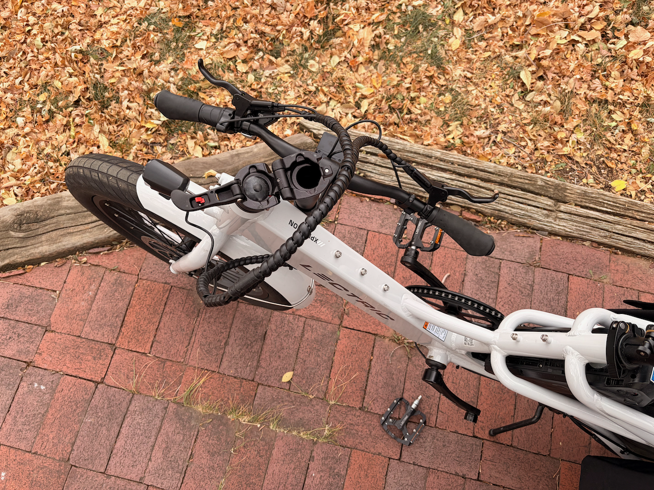 The Hopper was also the only bike in this test where the handle bar did not fold down for more compact storage. Which, in reality, I didn’t find to be such an amazing feature because if the passenger rails and footboards are installed, then stowing the handlebars doesn’t really make the bike that much skinnier to tuck away into a smaller space.